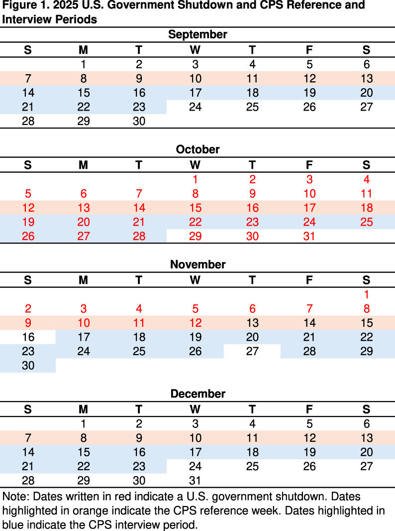 Bureau of Labor Statistics (2025, December 16). 2025 federal government shutdown impact on the Current Population Survey. https://www.bls.gov/cps/methods/2025-federal-government-shutdown-impact-cps.htm